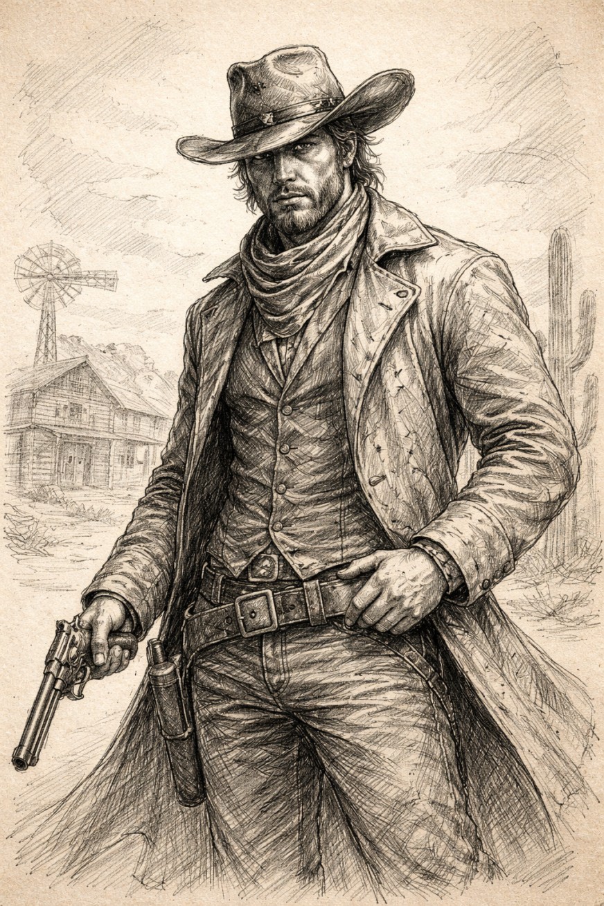 Тот, кто пришёл с ветром Пыльный пограничный город живёт по простым правилам — золото, страх и молчание. Здесь давно не стреляют без причины. Здесь стреляют, потому что так нужно тем, кто правит. Однажды с ветром приходит незнакомец. Он не называет имени, не ищет друзей и не объясняет, зачем ему этот город. Он снимает комнату, наблюдает и задаёт слишком правильные вопросы. Старые раны начинают кровоточить, а люди — вспоминать то, о чём предпочли забыть. Город привык к тишине. Но ветер меняется. Когда прошлое выходит на улицу, а правда становится опаснее револьвера, каждому придётся выбрать сторону. И тогда станет ясно — пришёл ли он за местью, за искуплением или чтобы разрушить порядок, который давно держится только на страхе. Иногда ветер приносит пыль. Иногда — человека, который её поднимет. Развернуть